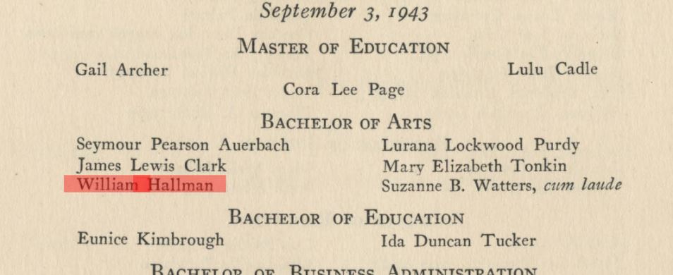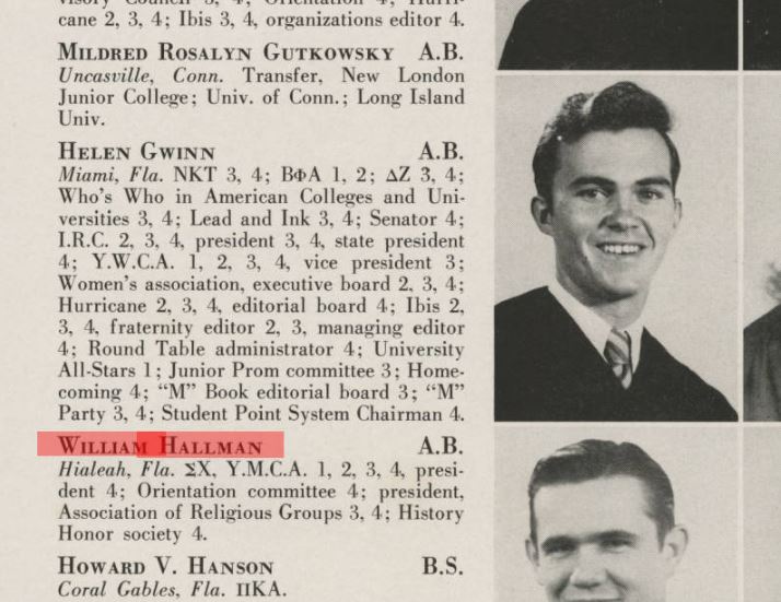 So, my next question is who was William E. Hallman? I was able to find his senior portrait in 1943 Ibis as well as his name in the September 1943 commencement program. His name appeared 11 times in The Miami Hurricane from 1940 to 1943, as he was active as the President of YMCA and a member of the History Honor Society. I would love to have this publication digitized and make it accessible online, if we could identify the family of the author for permission.