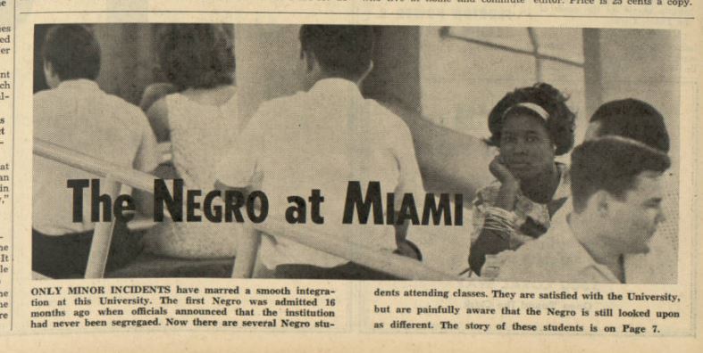 Miami Hurricane, October 26, 1962 article “The Negro at Miami”