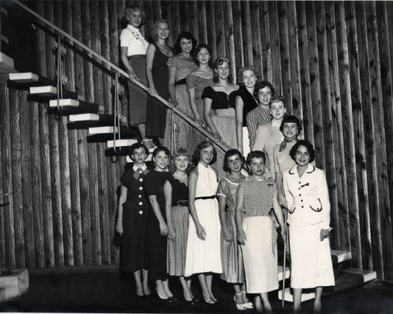 Can you name someone in the picture above? Are you there or do you know someone in the group? When was it taken? Where on campus? What was the occasion? Currently, we can only describe the image as a group of female students, and we assume it was taken during the 1950s.
