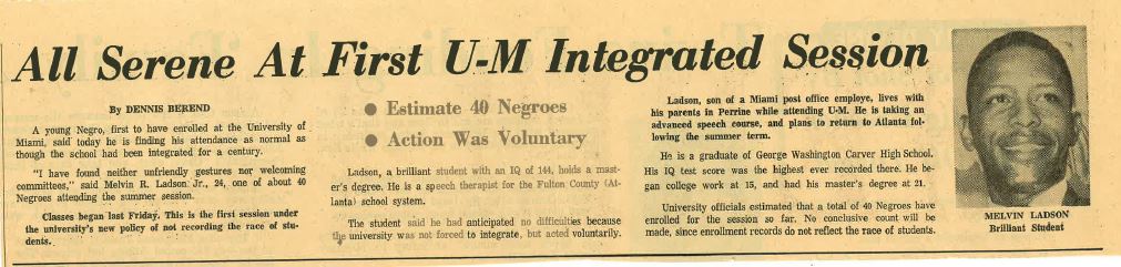 We are extremely excited to discover this never-been-reported information in The Miami News article published on June 19, 1961, because it is about the first Black student enrolled at the University of Miami in the summer of the first integrated session.