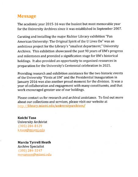 The last academic year was the busiest but most memorable year for the University Archives. What do you think were the top 5 accomplishments for the UA? Please read the brochure we just created “University Archives Academic Year 2015-16 Highlites” below. You could also download the document from here.